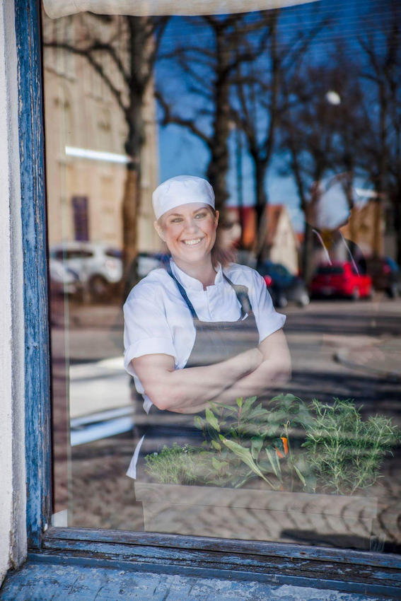 Hon odlar örter och tomater hemma i trädgården, och på nätterna under vår, sommar och höst ger hon sig ut med pannlampan och skördar. Sedan mars 2017 driver hon Restaurang Hörnet i Vadstena.